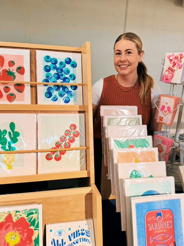 Hi! I’m Caitlan, the illustrator and designer behind Evergreene Graphics. I create bright, feel-good prints and risograph cards, all illustrated by hand and printed locally in Calgary with the help of some amazing print vendors. I love risograph for its layered colours, subtle textures, and the way every print turns out just a little different.