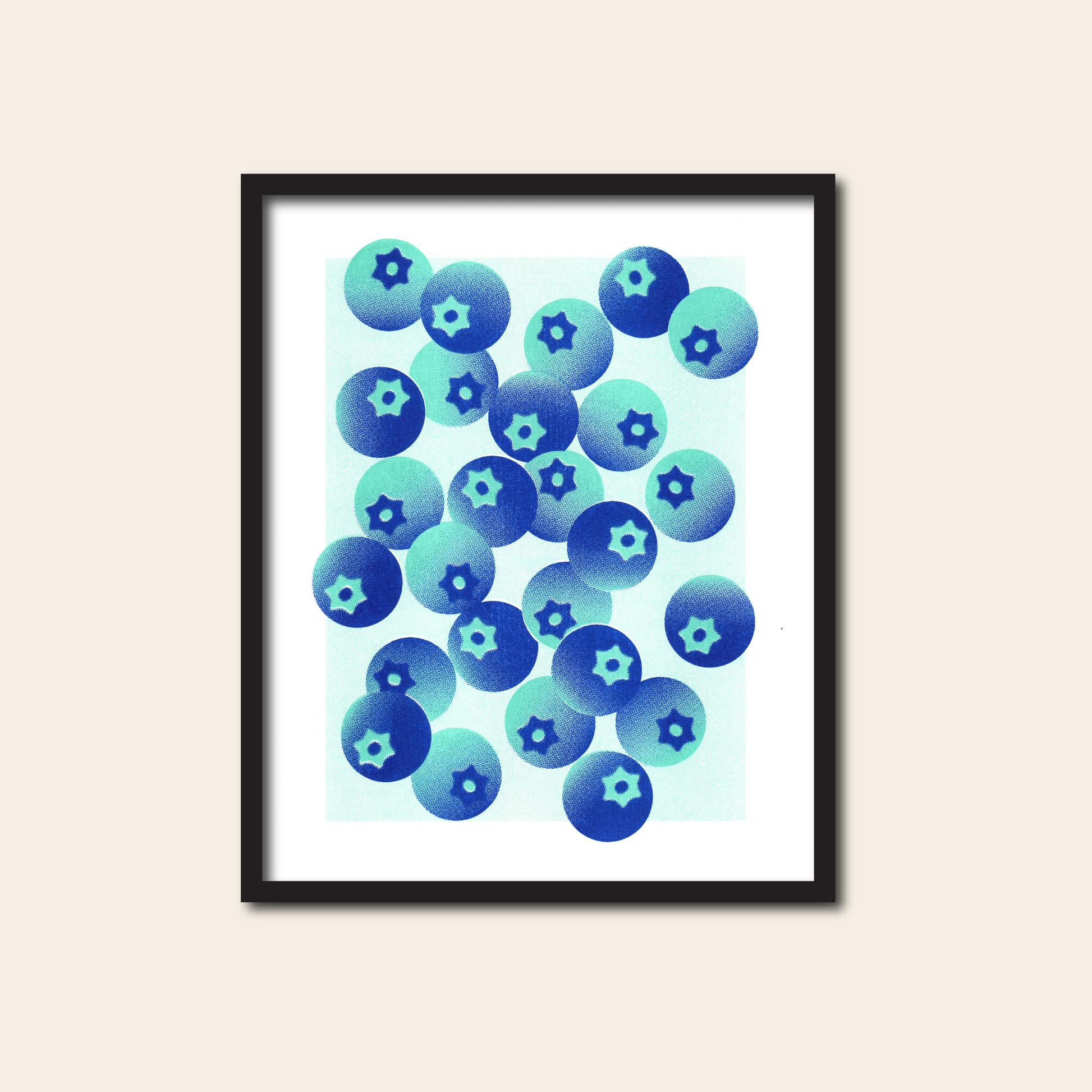 Fruit Trio: Strawberry, Lemon, Blueberry - Risograph Print, 8x10