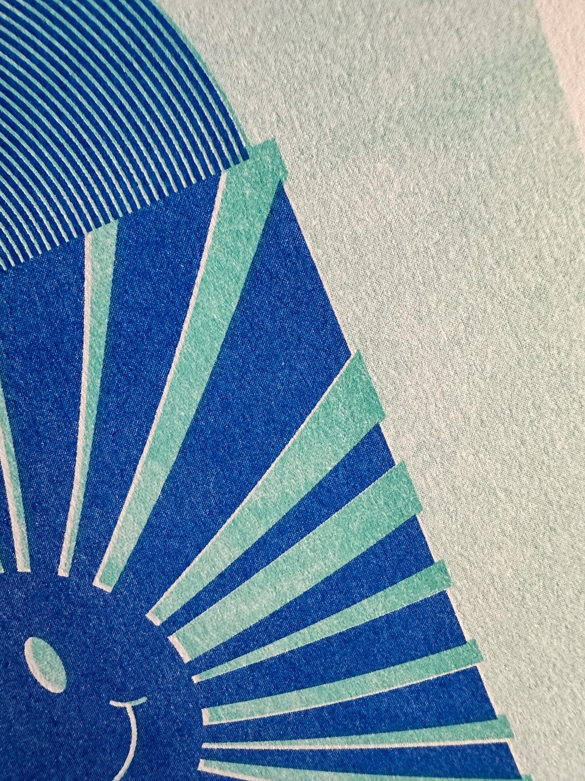 Created using a digital Risograph process similar to screen printing, this retro-inspired artwork features rich, layered colors and subtle imperfections that make each print truly one of a kind. Hand-fed through the print drum, the tiny irregularities give it a unique, vintage charm. Printed on premium, sustainable paper, this vibrant piece adds a bold, nostalgic vibe to any space.